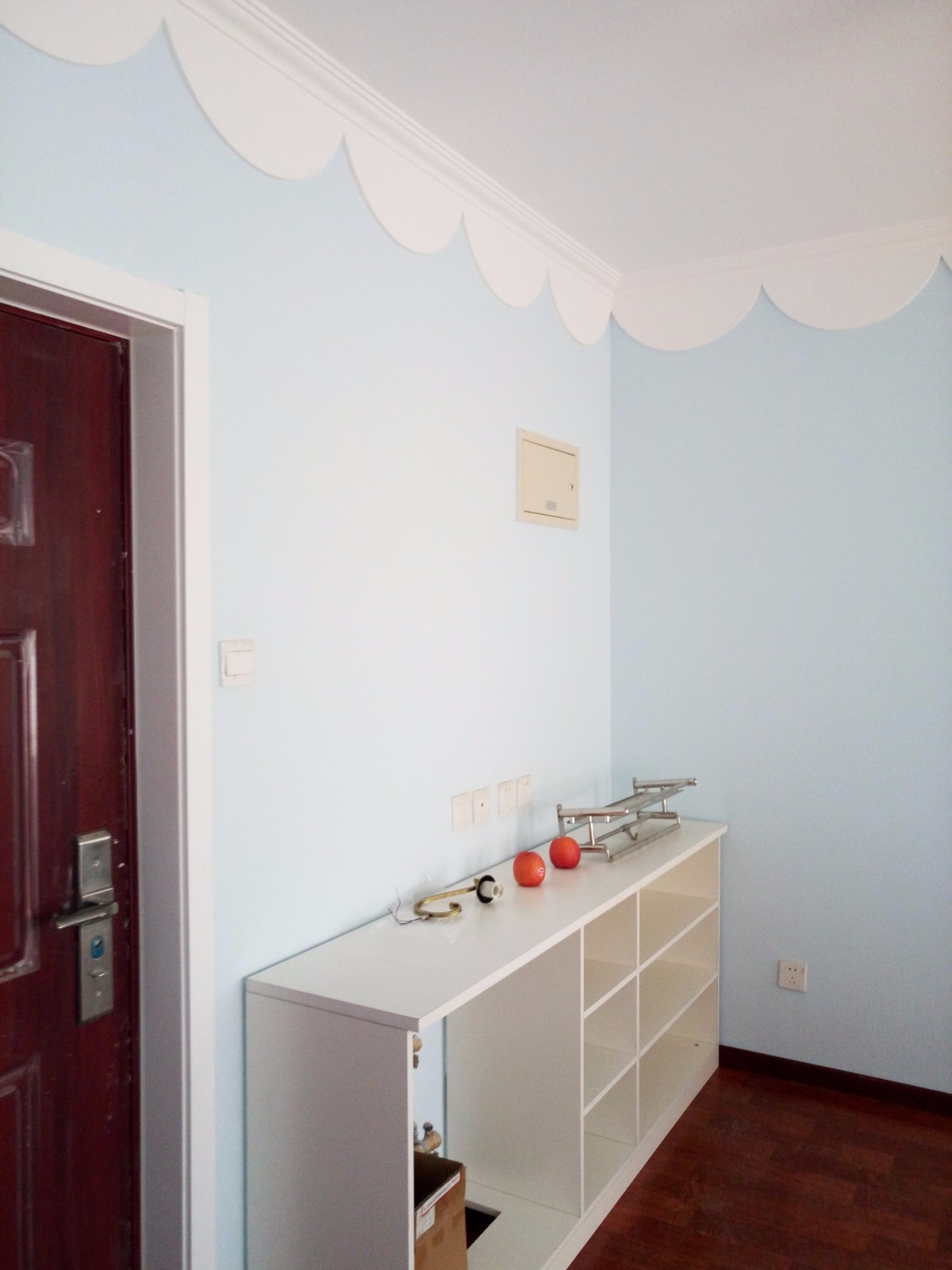 草桥欣园的新房,面积65平的两居,全包4.3W,这是个一居改的两居,为了不影响彩光把墙体设计成一面造型装饰玄关,装修风格很简约